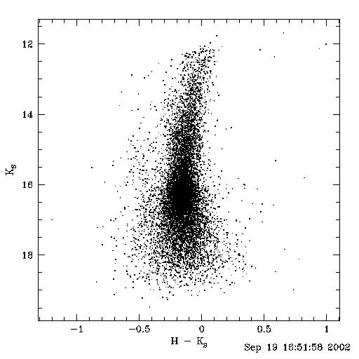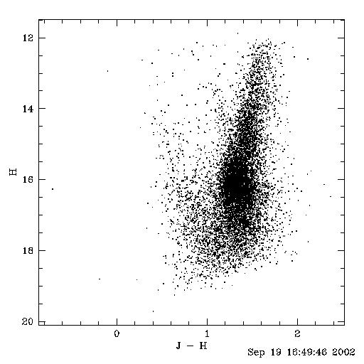Instrumental colour-magnitude diagrams with source extraction using Christophe Alard's Software (Nblue) for a set of J,H,Ks images at one location towards C04 (DENIS) field. These are with relatively long integrations of 5sec where Christophe's software seems to be superior to the DAOPHOT implementation in IRAF.